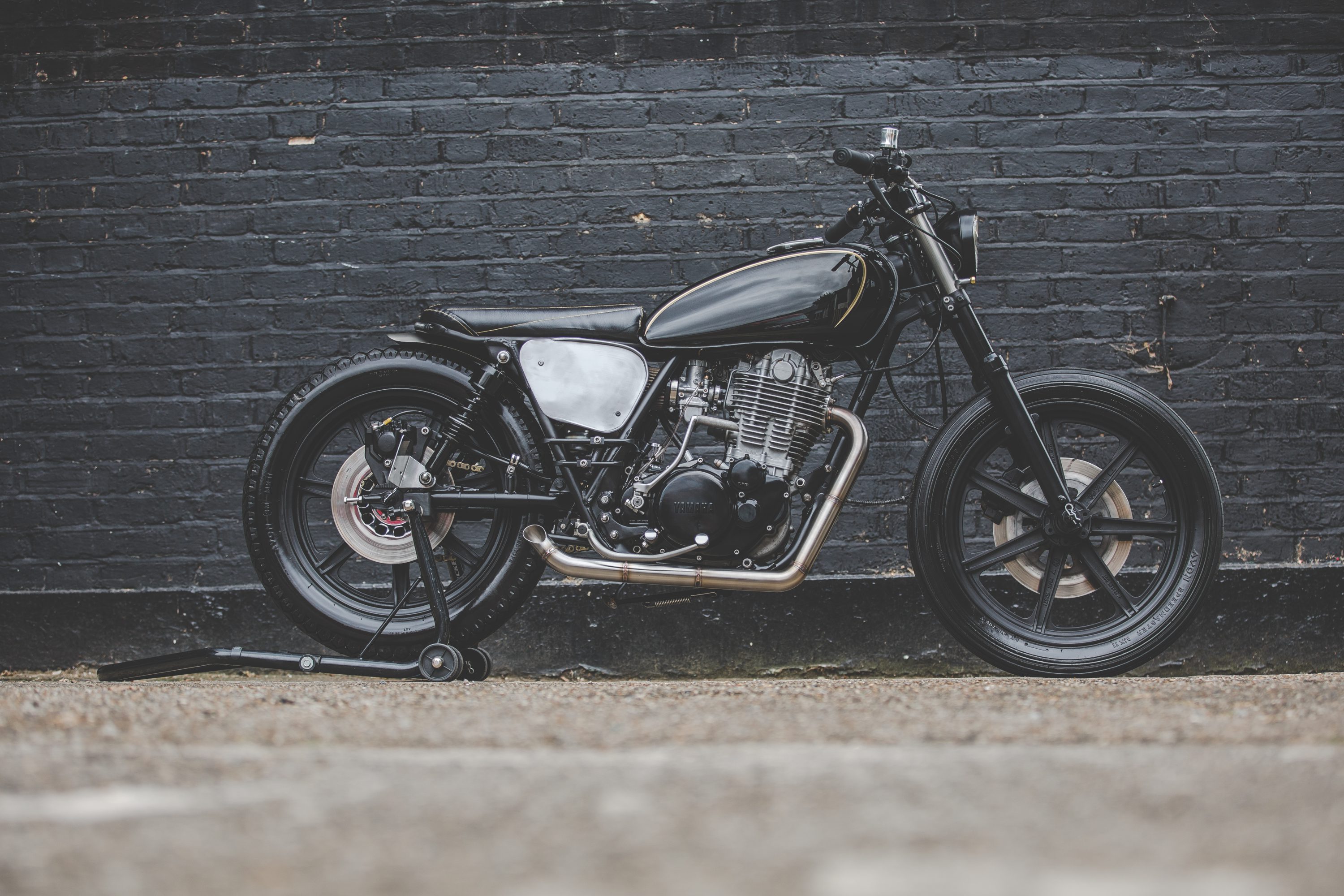 - Big bored SR500 engine with upgraded Mikuni carb.